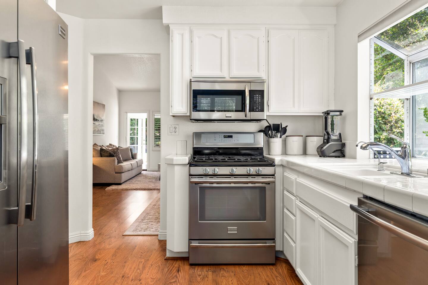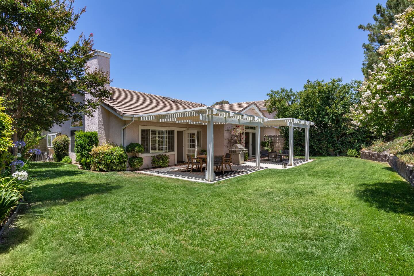 This 3 bedroom / 3 baths Valencia Mountain Top home is a true gem of a place that offers short and long term stays. Featuring modern upscale furnishings throughout the home, updated kitchen w/ stainless appliances, refaced fireplace in family room. This home has a cozy vacation home atmosphere, including a beautiful backyard with BBQ, lounge and outdoor dining. All bedrooms are equipped with special hotel-like amenities, upgraded cable TV high-speed internet and spa towels.