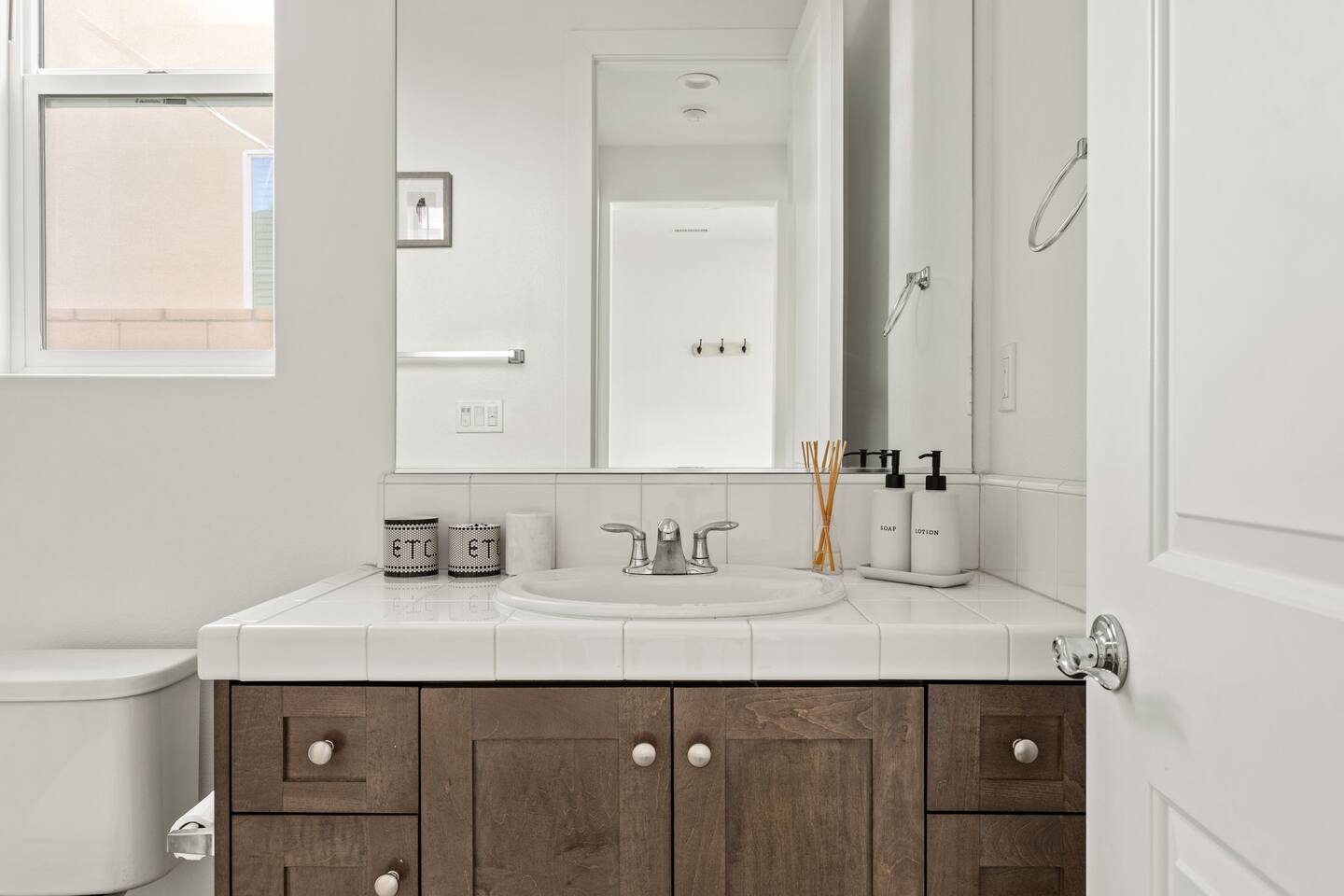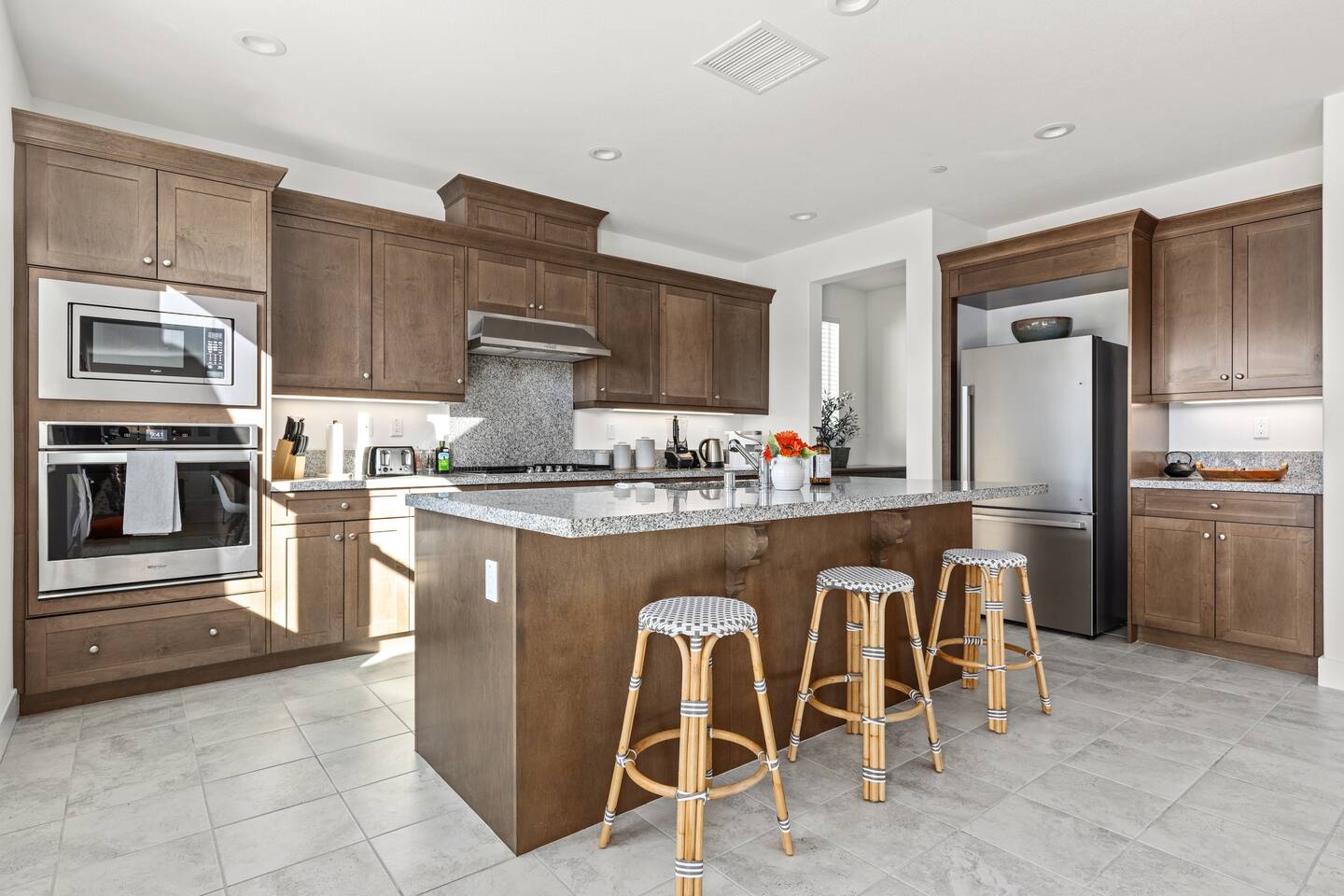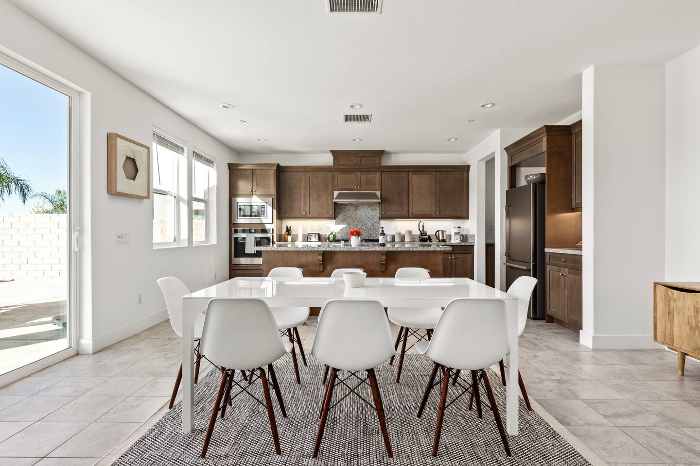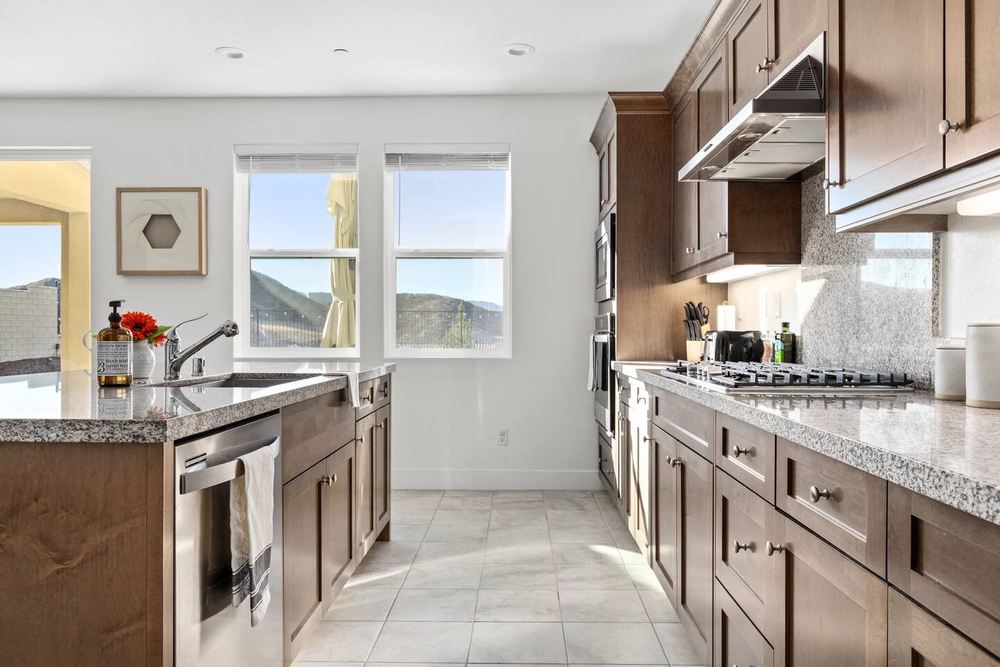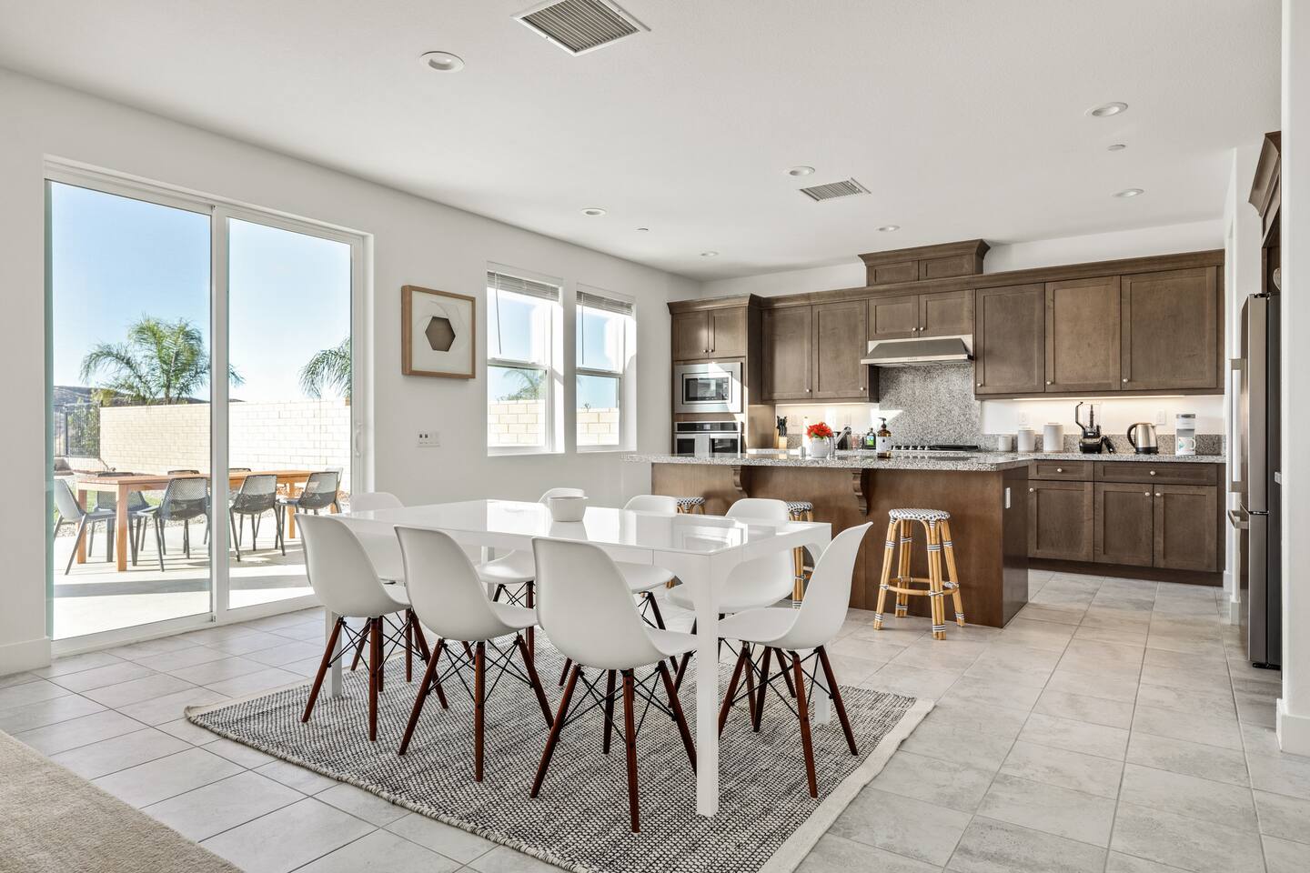 - 5 bedroom / 3 bathroom hilltop home - Open Lease: Unlimited availability guaranteed (2 week notice required upon checkout) - Pets welcomed (no additional fee) - NO Parties nor loud music (you will forfeit your stay if there are any noise complaints) - Design: Mediterranean aesthetic meets mid-century modern - Location: A quiet & safe neighborhood of $1M+ single-family homes